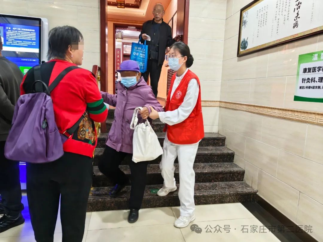 在石家庄市第二医院门诊,每天都有这样的暖心场景上演。“阿姨,呼吸内科诊室在您左手边第一个房间,我扶您过去。”“叔叔,您别急,检查结果可以从医院公众号查询,我来教您操作。”