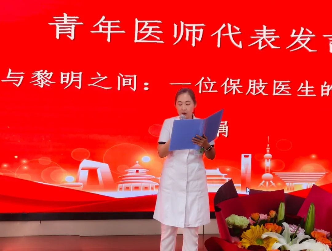 青年医师代表糖尿病九科主任李娟登台演讲,展现了新生代医者的理想与担当。
