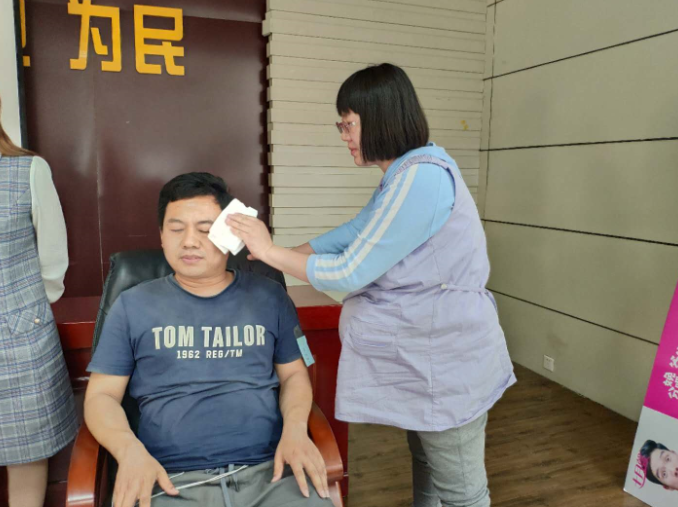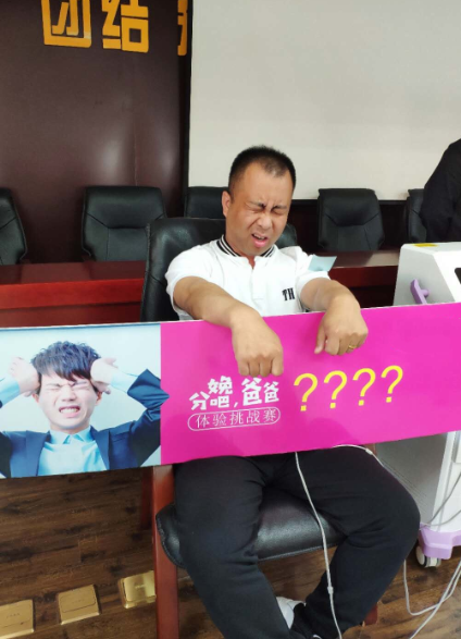 体验现场,18位准爸爸在爱人的陪同下,依次分组进行分娩镇痛体验,工作人员将分娩镇痛仪的电极片贴于体验者的腹部,通过调节机器逐级增强传输到腹部的电流,模拟出分娩时的痛感。随着电流增强,准爸爸的面部表情越来越丰富,肢体语言越来越多彩。准爸爸在3级疼痛时开始表现出明显的不适,大部分都能咬牙坚持到10级疼痛结束。也有的准爸爸在7级疼痛时大呼受不了,中途结束体验。